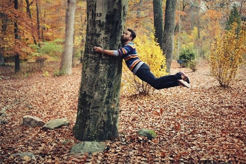 回到地球表面 摆好pose拍摄创意漂浮人像